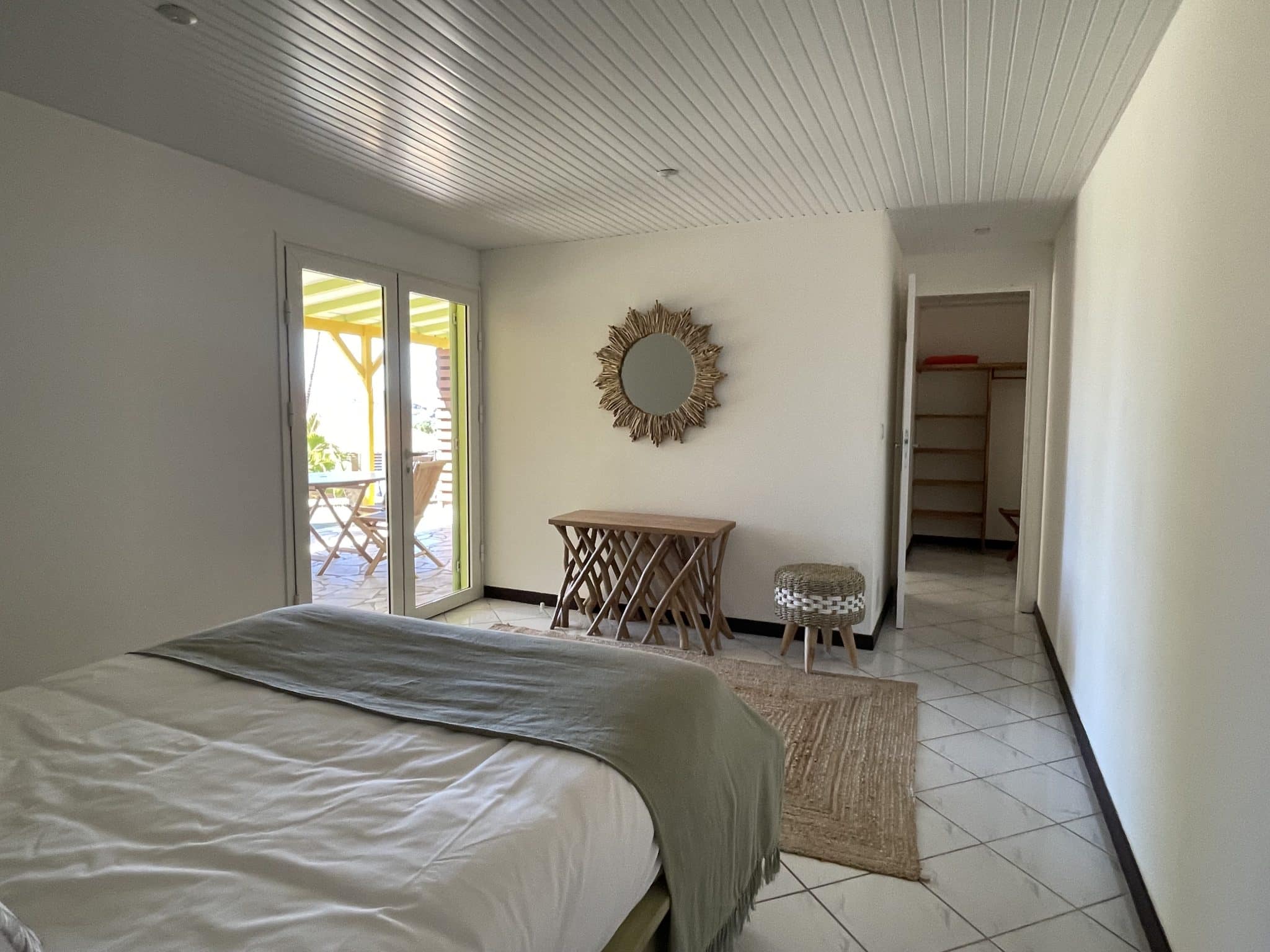Une vaste chambre, une petite cuisine et un espace de vie extérieur, cette location vous permettra de découvrir les Saintes dans un cadre qualitatif, idéalement situé entre Le Village, et le Pain de Sucre. Emplacement stratégique pour une découverte ou re découverte de l’archipel des Saintes.